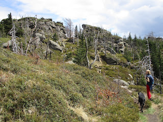 V neděli jsme šli s Pájou a Kesi na výlet. Bylo teplo, slunečno, tak jsem vymyslel výlet s pěkným kopcem. Zaparkovali jsme v Bílém Potoce blízko nádraží a pak už to bylo jen do kopce. Pokud tedy nepočítám klesání z Hajního kostela, kam jsme odbočili na vyhlídku a pořád mám takové neblahé tušení, že mě Pája podezírá, že jsme tam šli jen kvůli kešce. Ale tak to nebylo. :) Nahoře kolem cimbuří už to byla samá pozitiva a sociální jistoty. Krásné skály, výhledy, svačina a nikde nikdo. Ale sestup zpět do nížin jsem úplně nedomyslel, protože jsme klesali, klesali a klesali až nás to moc nebavilo. Ale výlet to byl bezvadný.