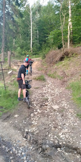 Odbočku na žlutou všichni kromě Miloše minuli a trasu si tak o nějaký ten kopec prodloužili. Taky jsem minul, ale hned jsem si říkal, že tudy bych dojel zase do Chřibské a otočil jsem to. Cesta do Jedlové byla příjemná, pořád lesem. V hospodě jsme se všichni zase našli.
