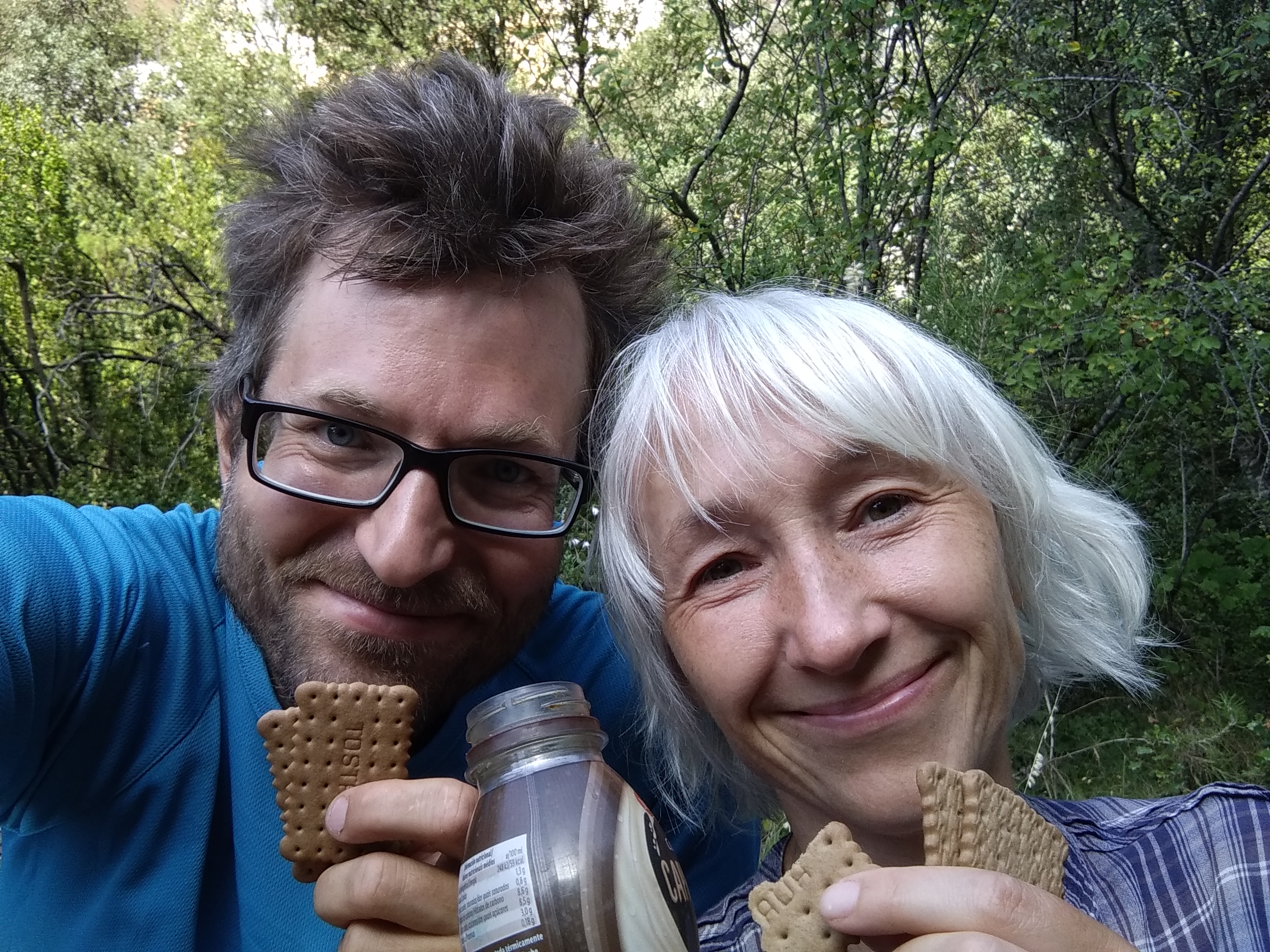 Spali jsme u vody, tak nebylo vedro, ale zase bylo ráno chladno, nechtělo se nám ze stanu a zase jsme docházeli skoro úplně na kaši. Taky jsme se zdrželi ranním čajem, ale oproti třeba Mallorce jsme si ho skoro nedělali a chtěli jsme držet tradici. :-) Došli jsme jen k mostu z prvního dne a tam jsme se do večera koupali a poslouchali podcasty. Ty nám hodně pomohly i v kopcích. Večer jsme poprvé nešli na večeři do městečka, ale do restaurace hned u kempu a taky jsme si moc pochutnali.
