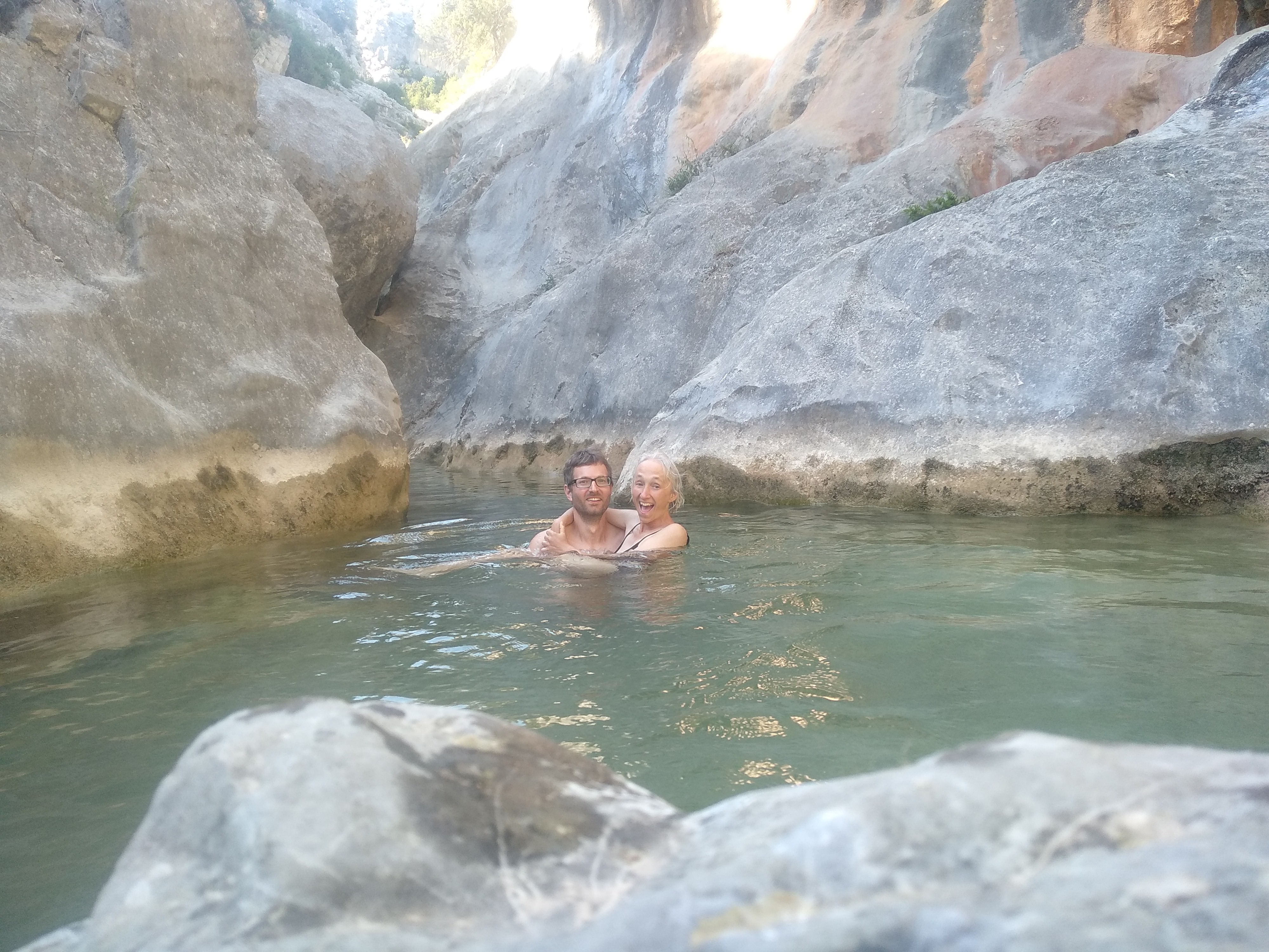 Další den jsme se šli podívat na naše druhé jeskynní malby (první byly u Rodellaru). Byl tam krásný jelen a cestou zpět ještě další jeskyně s asi liškou. Odpoledne jsme se byli koupat zase na jiném místě, u jiného středověkého mostu.