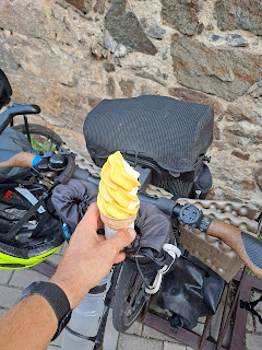 Náhradní plán tedy byl jet k nám na chatu a pak se uvidí podle počasí. Z fotek to vypadá spíš na gastrovýlet (zmrzlina, pivo, pivovar Kocour), ale fakt jsme i něco ujeli. :-) V neděli ráno bylo hezky, tak jsem naplánoval trasu do Kyjova a dále do Krásné Lípy, ale jelikož bychom museli přestupovat, dojeli jsme nakonec až do Varnsdorfu.
